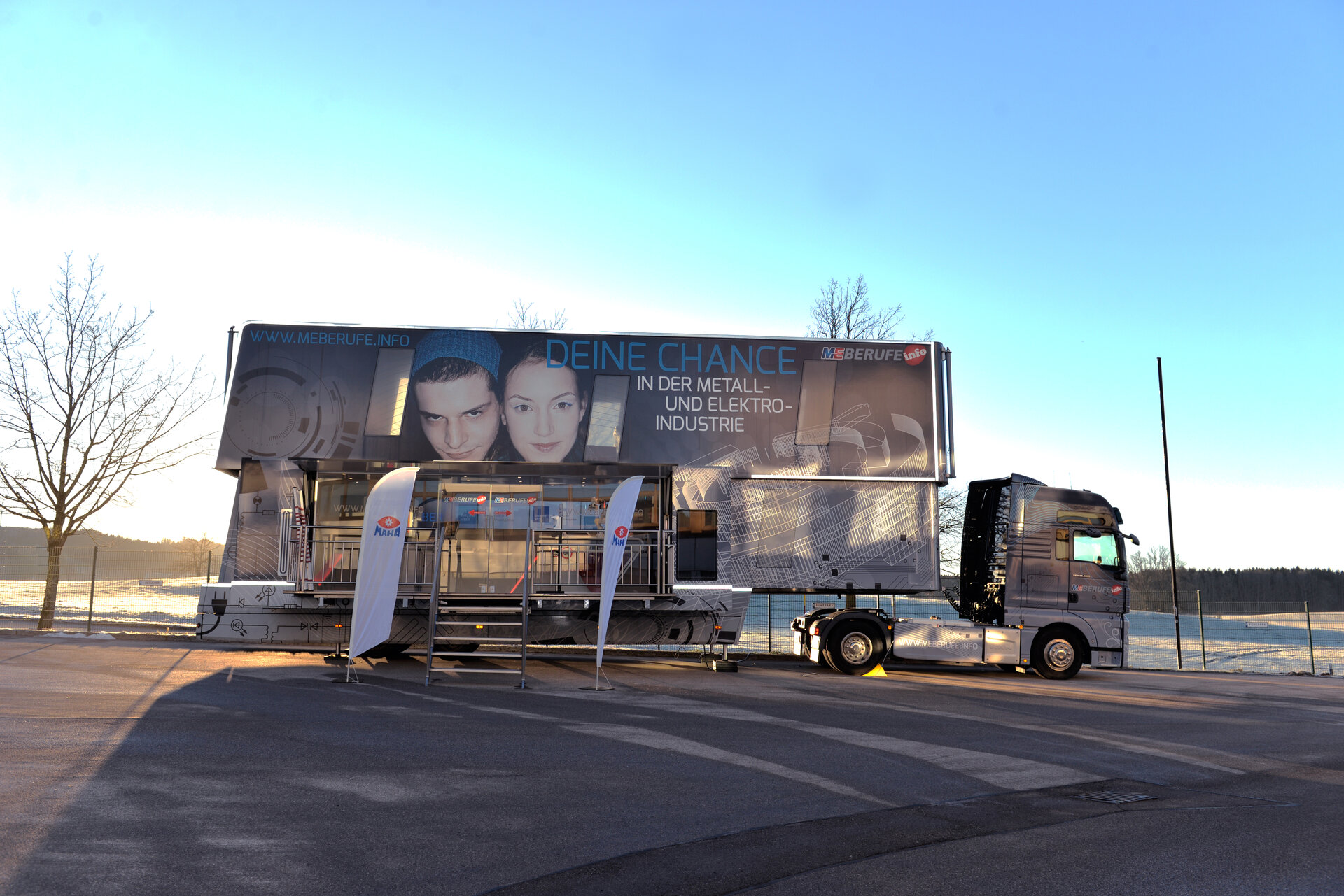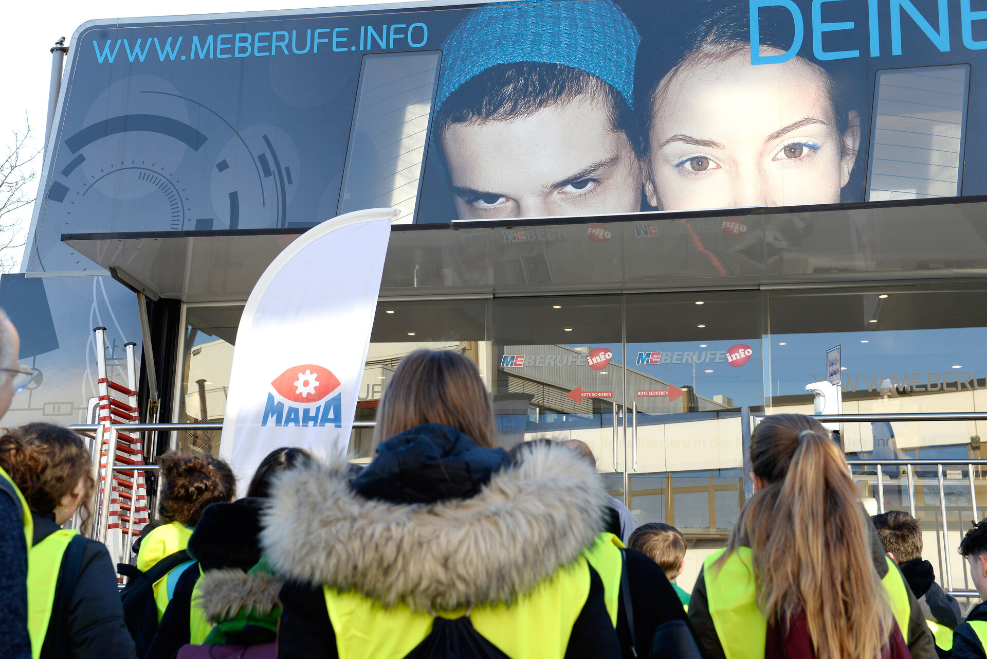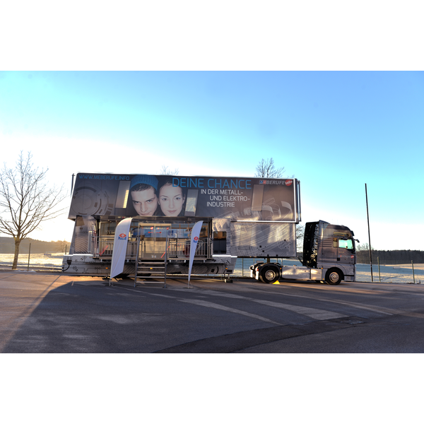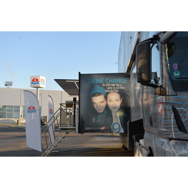 Der Besuch des M+E InfoTruck (M+E = Metall und Elektro) von bayme war bereits im vergangenen Jahr ein voller Erfolg. Mit dieser Erfahrung stand für MAHA fest, dass eine Wiederholung stattfinden muss. Der InfoTruck fährt unter dem Motto „Faszination Technik“ durch Bayern und informiert Schüler/-innen der siebten bis zehnten Klassen an Mittelschulen über die Ausbildungsmöglichkeiten in der Metall- und Elektroindustrie.