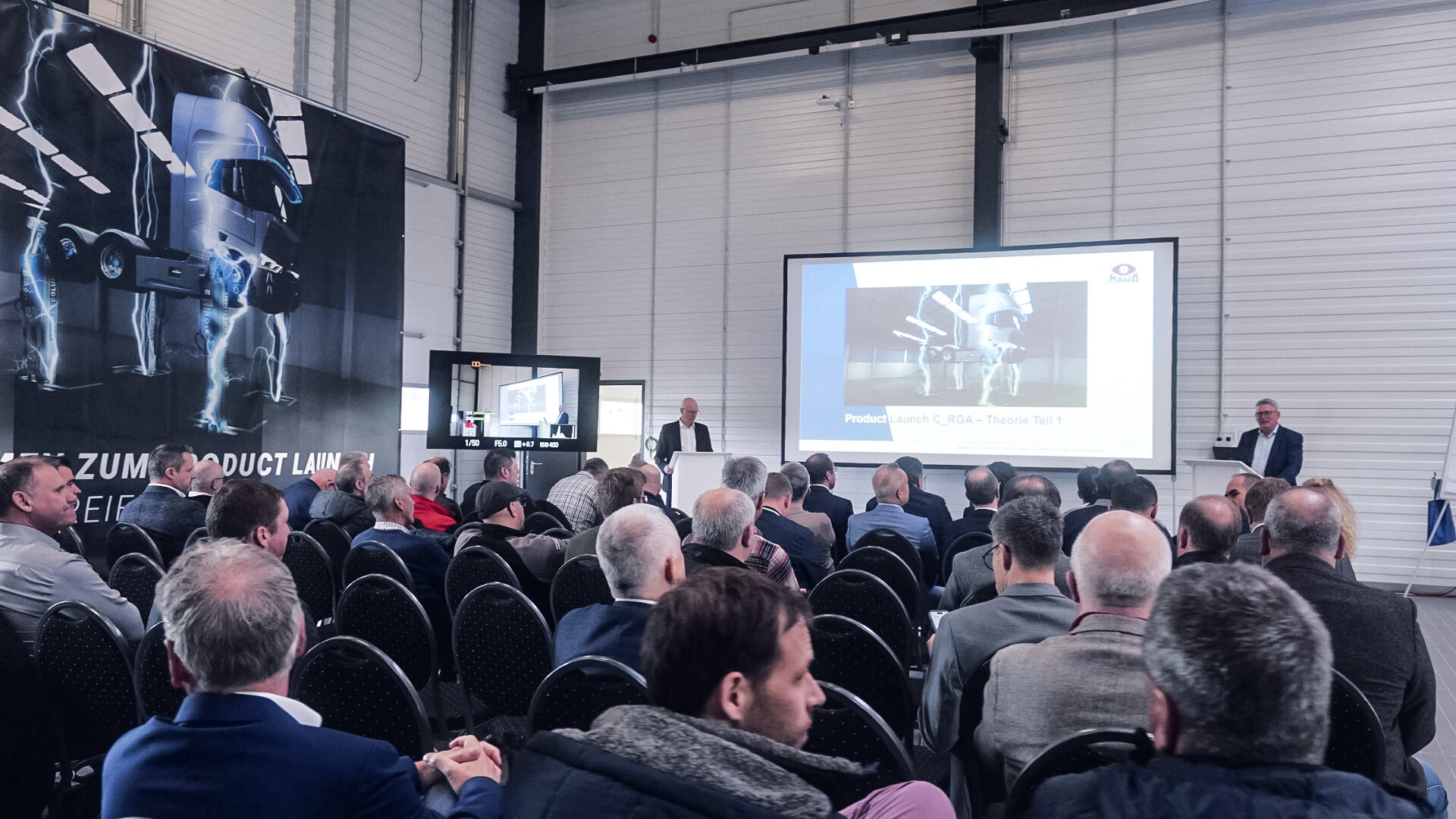 Vorhang auf für eine herausragende Produktinnovation aus dem Hause MAHA. Diesmal dreht sich alles um die neuen C_RGA mobilen Radgreifer des Allgäuer Maschinenbauers. Das Product Launch-Event fand im nagelneuen Daimler Truck Center in Haan bei Wuppertal statt.