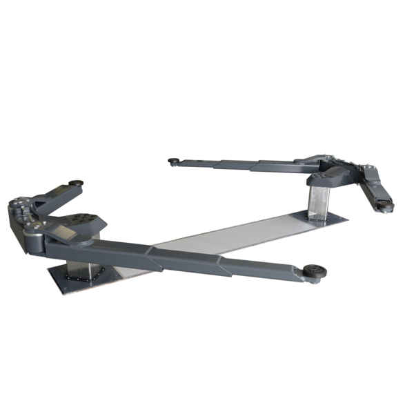 - Große Durchfahrweite zum leichten Befahren der Hebebühne mit Anfahrschrägen am Schwenkarmträger zum Schutz der Felgen