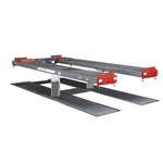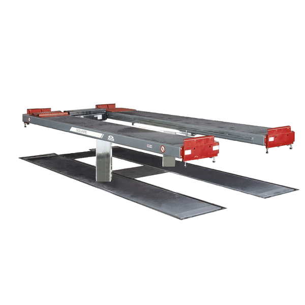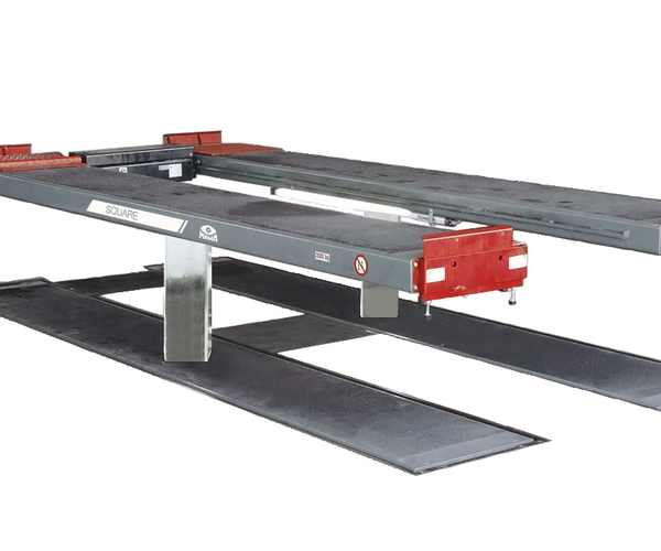 - Optionaler Ausbau zur Fahrwerksvermessungs-Hebebühne mit exakt ausgerichteten Fahrflächen, Schiebeplatten zur spannungsfreien Radauflage, Fahrflächen-Niveauausgleich und Achsmessstützen