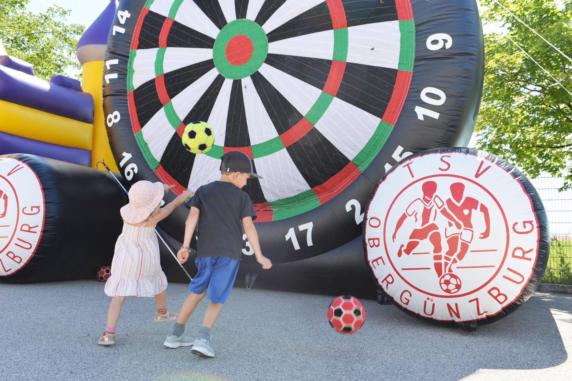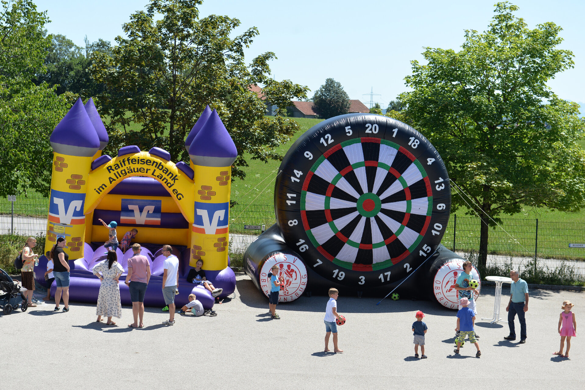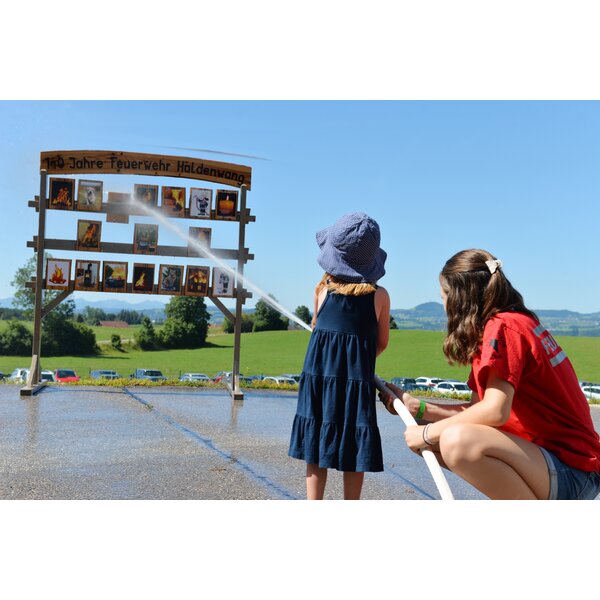 A colourful entertainment program provided fun and games. The little guests could have beautiful fantasy masks conjured up on their faces or even get creative themselves with sidewalk chalk. Helium-filled balloons took off into the cloudless sky, and the future candidates for the Haldenwang Volunteer Fire Department were invited to try their hand at water target spraying. Of course, a bouncy castle could not be missing.