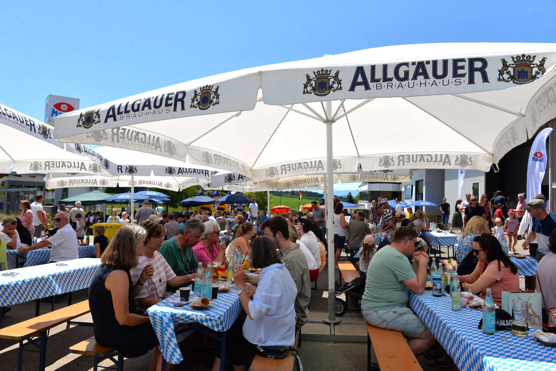 Haldenwang, 15 July 2023. With bright sunshine and cloudless skies, nearly 1100 guests came to celebrate and enjoy the MAHA summer party in Haldenwang on the company's premises. All MAHA employees were allowed to bring their relatives to the party and proudly present their workplace. It was very interesting for the visitors to be guided through the production halls and to learn more about the creation of the MAHA product world.