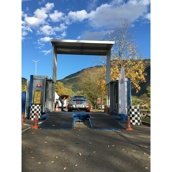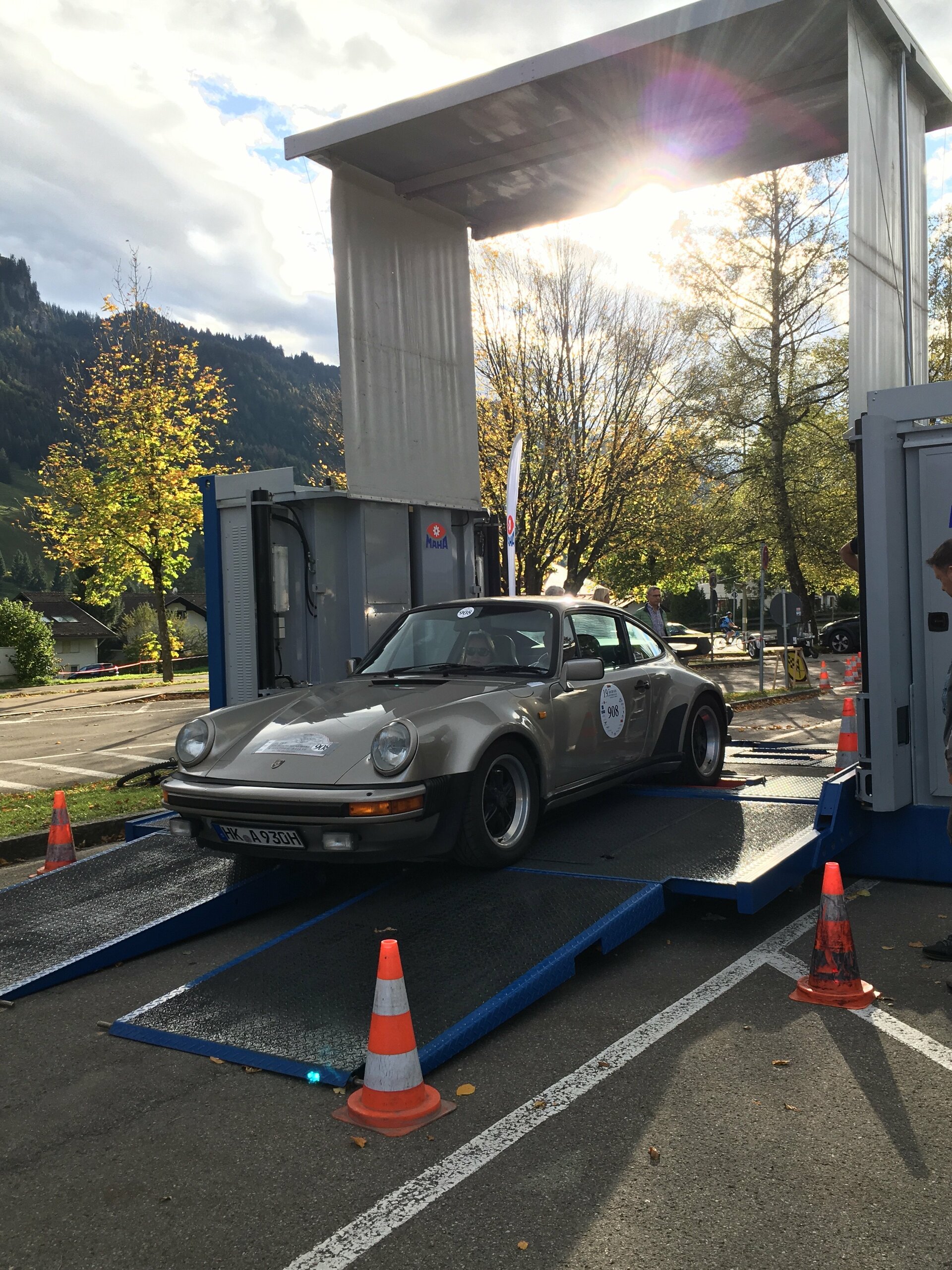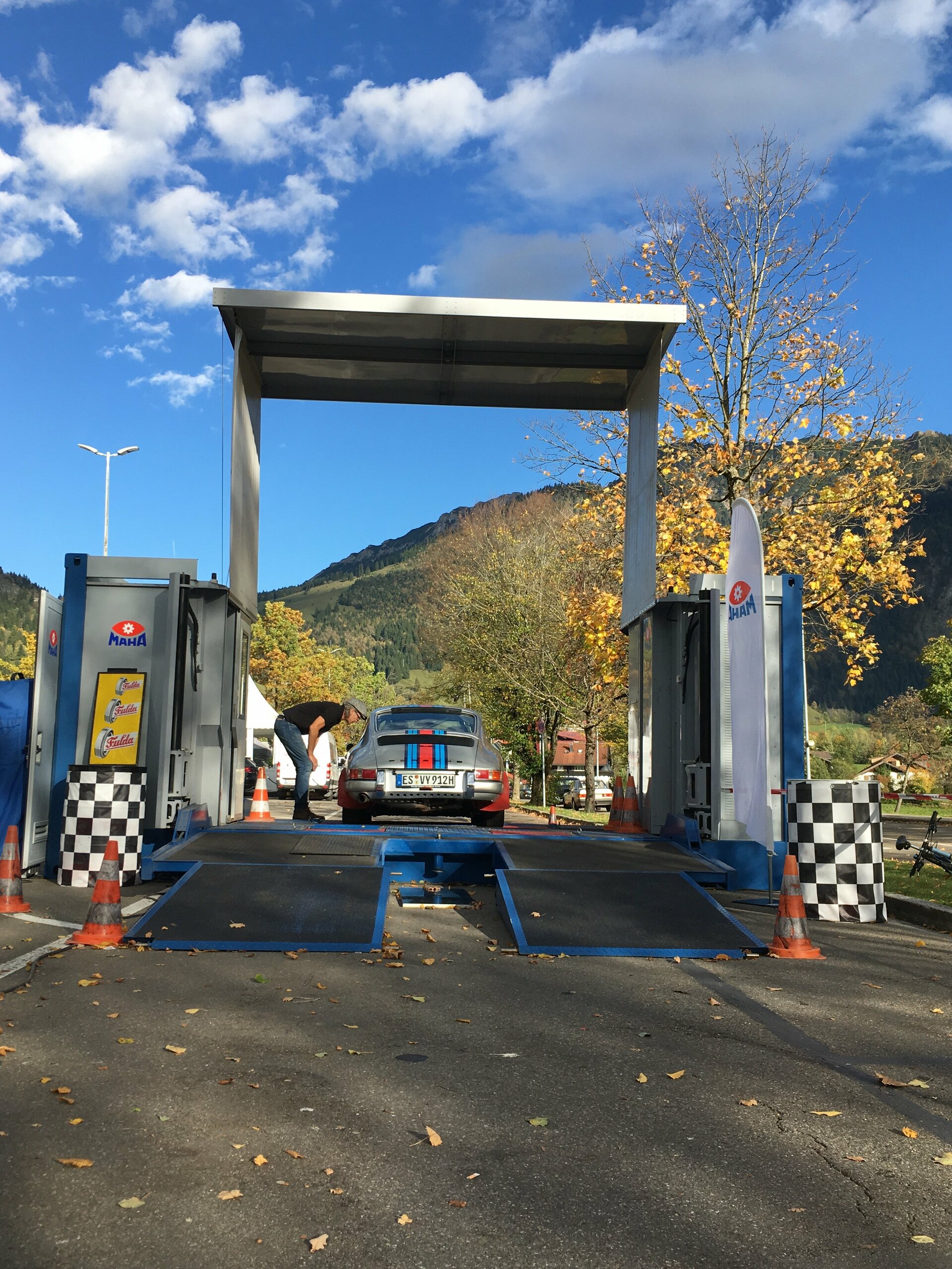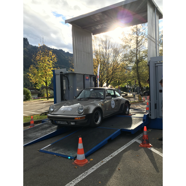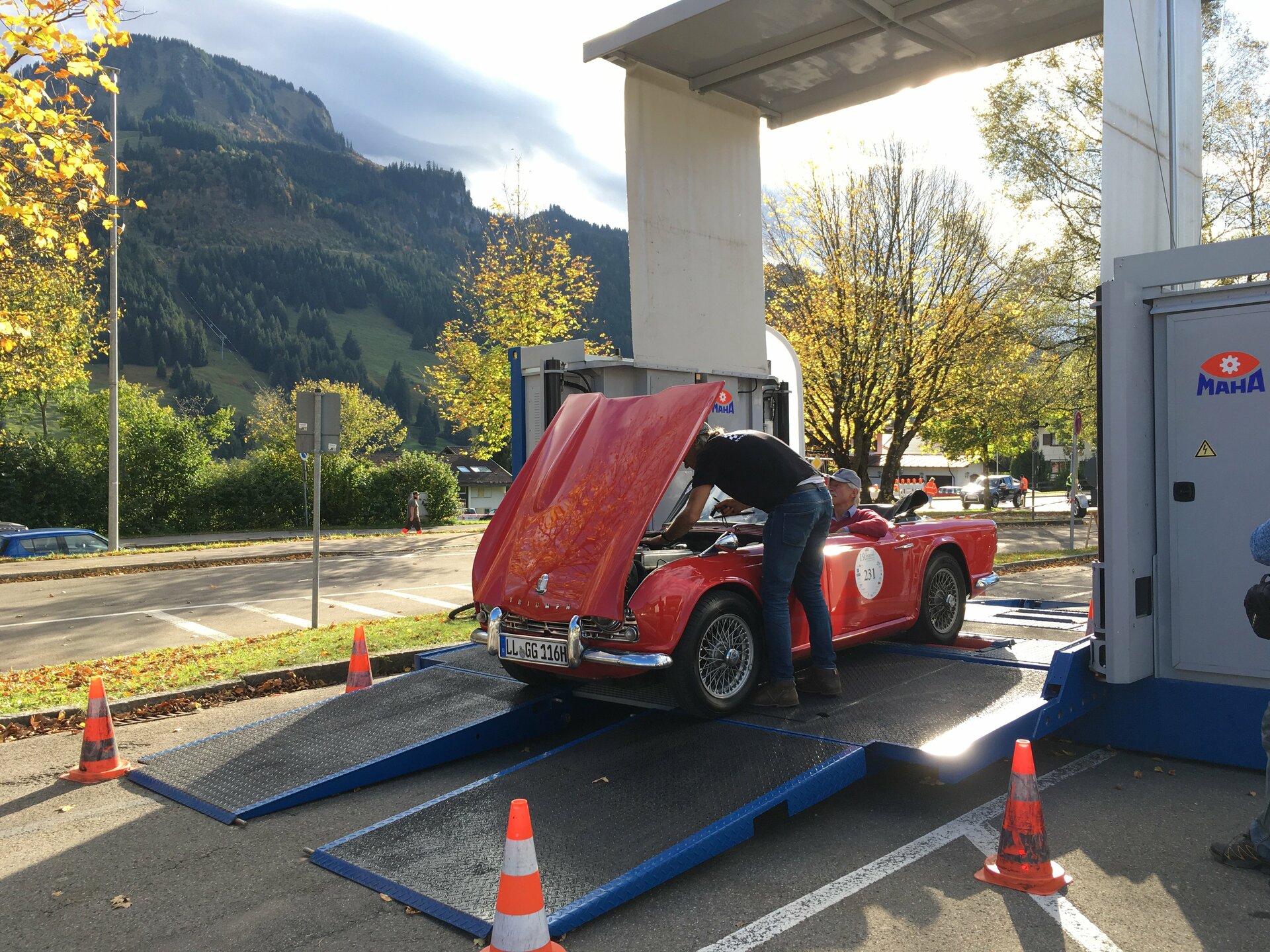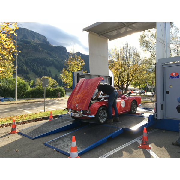 The workshop supplier provides a mobile test container to approve the rally vehicles for the popular vintage vehicle event held in the Allgäu region.