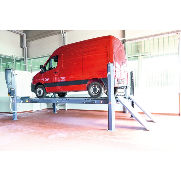 - Four post lift with electro-hydraulic drive unit for surface mounting