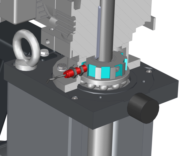 - Recirculating ball spindle suspended in maintenance-free roller bearing