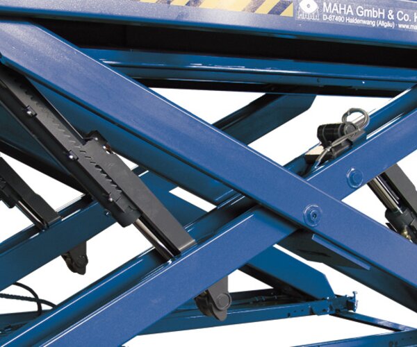 - El sistema de medición de recorrido, libre de mantenimiento e integrado en los cilindros de elevación, (sistema de medición de recorrido lineal-absoluto) hace prescindibles las barreras de luz para monitorizar la sincronización y los interruptores eléctricos para detectar la altura de elevación