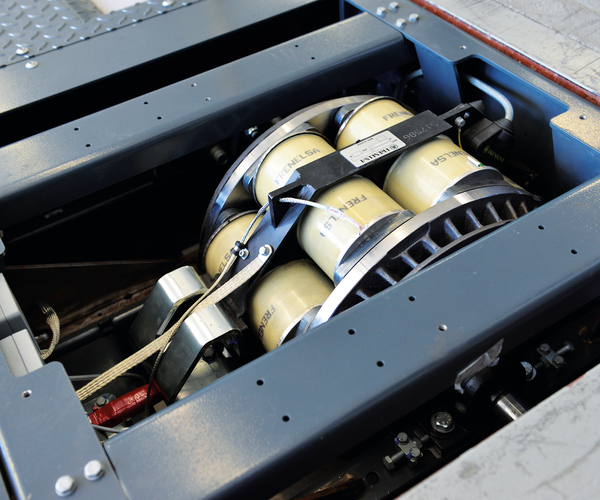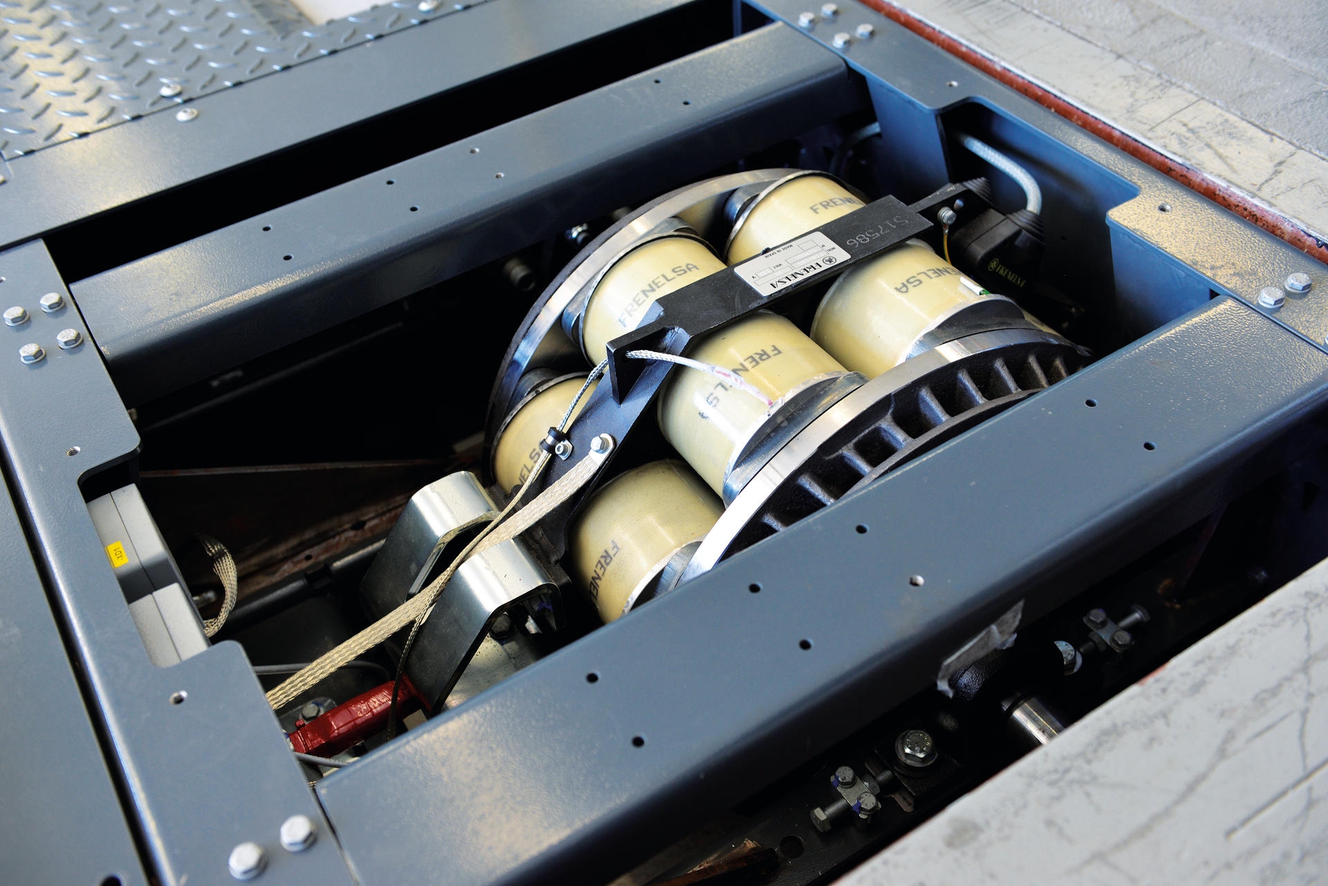 - Self-supporting closed roller set with two eddy current brakes for the front axle with E-machine